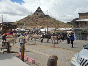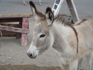 There are 22 burros on the herd now - almost double the size from when we first visited Oatman. I don't know all the names like I used to. This little black one is a probably a gene of Splotches coming out. She is the only black one in the herd. |