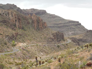 The west side of Christmas Tree Pass takes you through the Spirit Mountain Wilderness and Bridge Canyon Wilderness and the south east portion is in the Lake Mead National Recreation Area. The Pass crosses the Newberry Mountains. The road is well maintained but there is evidence of washes. Since it rained the last couple of days, there were areas that had a few dips and ruts but nothing that was a problem. |